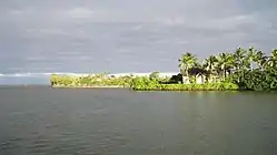 Kahaluʻu Fishpond, historically known as Kahouna Fishpond, on Kāneʻohe Bay in windward Oʻahu, is one of only four surviving ancient Hawaiian fishponds on Oʻahu that were still in use well into the 20th century. In the previous century there were at least 100 such fishponds around the island. Kahouna was in use until about 1960 and was added to the National Register of Historic Places in 1973,[2] after members of the surrounding community raised concerns that it would be destroyed by development.[3] The Kahaluu Taro Lo'i Historic District was also added to the National Register at that time.