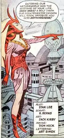 ![]() Kala,Queen of the Netherworld from her first appearance in Tales of Suspense #43 (July, 1963). Art by Jack Kirby. | |