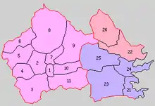 Blue=Kamaishi City (21. Kamaishi; 23. Kashi; 24. Unosumai; 25. Kurihashi)