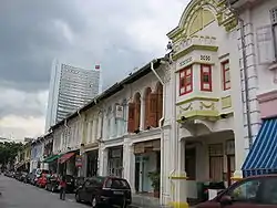 Kampong Glam (Malay: Kampung Gelam; Jawi: کامڤوڠ ڬلم ; Chinese: 甘榜格南; pinyin: Gānbǎnggénán; Tamil: கம்போங் கிளாம்) is a neighbourhood and ethnic enclave in Singapore. It is located north of the Singapore River, in the planning area of Rochor, known as the Malay-Muslim quarter.