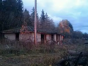 In 1900 the NP built a 2,850-foot passing track, a 1,200-foot house track, a wye connection with the Green River Branch to Kangley, Selleck, Barneston and Kerriston, a fourth class combination station, a second class section house, a 24-man bunkhouse, a double tool house, and a box water tank and standpipe. The ornate Victorian station at this site was burned to the ground in 1944 when a wood stove pipe through the roof overheated and caught fire. It was replaced by an innovative temporary station -– a round-roof box car. After World War Two the Northern Pacific replaced the box car with a solid brick station. This lasted until 1959, when the U.S. Army Corps of Engineers were forced to build the Northern Pacific yet another station directly northwest of its postwar structure (due to the line change caused by the Corps of Engineer's Howard A. Hanson Dam at Eagle Gorge). Thus, Kanaskat had the dubious honor of being home to four stations in 90 years.