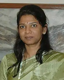 Kanimozhi Karunanidhi (born 5 January 1968) is an Indian politician, poet and journalist. She is a Member of Parliament, representing Thoothukkudi constituency in the Lok Sabha (the lower house of India's Parliament). She was also a former MP, represented Tamil Nadu in the Rajya Sabha (the upper house of India's Parliament).[2] Kanimozhi is the daughter of the former Chief Minister of Tamil Nadu M. Karunanidhi and his third wife Rajathi Ammal.