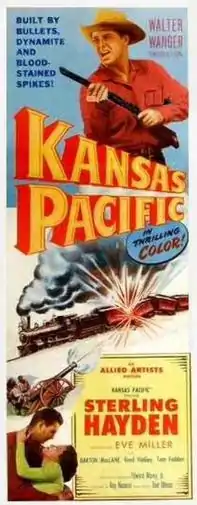 Kansas Pacific is a 1953 release copyrighted in 1952,[1] U.S. Cinecolor Western film released by Allied Artists Pictures and directed by Ray Nazarro. It stars Sterling Hayden and Eve Miller. The film offers a fictionalized account of the struggle to build the Kansas Pacific Railway in the early 1860s just prior to the American Civil War. In the film the building of the railroad in Kansas is opposed by sympathizers of the South before it forms the Confederacy.