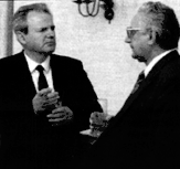 On 24 January, delegations from SR Slovenia and SR Serbia, led by Milan Kučan and Slobodan Milošević, met in Belgrade. Kučan and Milošević agreed that SR Slovenia could leave Yugoslavia and that Serbs have the right to live in the same country.[6] The agreement was formalised on 14 August 1991, after Slovenia seceded.[7]