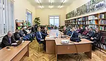 The Library was founded in 1946 to serve scientists working at the Karelian-Finnish Research Facility of the USSR AS. Its first director was S. P. Guima (1946—1953). In the following 19 years the library was headed by V. N. Yakovleva (1953—1972). In the 1970s, when the Library for Natural Sciences (LNS) was being established, KarRC RAS Scientific Library was also included in the RAS LNS centralized library system. For many years (1972—1992) the Scientific Library was headed by O. G. Satsuk.[32] The main priority for the library was to supply KarRC RAS scientists with as much as possible relevant information from abroad. International book exchange was arranged through the USSR AS Library. In the 1970s the library got the chance to be included in the Interlibrary Loan (ILL) system to order literature from other libraries. A regular activity was the exhibitions of new arrivals to ease and expedite access to the books. Literature exhibitions have accompanied all large scientific conferences, symposia and seminars.[33] Since 1954, the catalogue of publications by KarRC RAS staff has been maintained.[34] In 1995 computerization of the library began, and the electronic catalogue was established based on computer technology. The electronic catalogue includes information on books and other types of documents in Russian and other languages in stock at KarRC RAS Scientific Library. Bibliographic entries are formatted according to RUSMARC. The electronic catalogue comprises the following databases:[35]