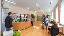 The publishing section was established in 1948 to invigorate the organization's publishing activities. S. S. Shleymovich was the first to head it. In 1968, as the amount of publications by the USSR AS Karelian Branch grew substantially, the publishing section was transformed into the Editorial and Publishing Department (EPD).[39] In 1971 the EPD became authorized to publish the journal of proceedings of the Karelian Branch. In 1973 the instant printing shop was set up to publish collected volumes and monographic books without having to engage external book publishers. The number of limited circulation editions (express publication of research results, pre-prints of conference papers and abstracts, etc.) increased remarkably. In 1992 the Editorial and Publishing Department and the instant printing shop were merged into one unit to promote the efficiency of their operation. The time period from manuscript submission to final product became much shorter, the entire publishing process was optimized.[43] A new phase in EPD development started in the 1990s with the onset of the computer era. Technical facilities of the editorial group were updated. Layout and design were computerized. Through renovation of the publishing process the quality of the printed products was notably improved, their volumes enlarged and the preparation and production cycle shortened.[43] The EPD now implements the entire book publishing cycle. The principal concern for the EPD is to produce its editions so that they meet all modern standards.[44]