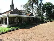After Blixen's death in 1962, the house was donated by the Danish government in 1964 to the new Kenyan government as an independence gift[2] and was opened to the public in 1986 as one of Kenya's national museums, following the popularity of the 1985 movie, Out of Africa.[3] However, this site was not where the Out of Africa was filmed, as the pictures were taken in Blixen's first farmhouse, Mbagathi, nearby, where she lived between 1914 and 1917. Nowadays the museum is situated in the upscale Nairobi suburb named "Karen," which was created by the land re-parceling of the coffee farm, after Blixen's return to Denmark.[2]
