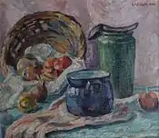 His diary notes dating back to 1970s reveal that he was particularly concerned with his explorations of problems of color and form, their unimpeded interpretation, the free flow of mind and emotions have become direction of art and artistic belief that transmits expressive means and sacred monumental sonority. The insight contemplations open up inner self and metaphysical thinking of the artist for the viewer ("Shell" 1975, "Amulet", 1977, "Indian jug" 1975).