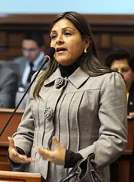 Karina Juliza Beteta Rubín (born January 18, 1975) is a Peruvian politician. Congresswoman representing Huánuco for the period 2006-2011[1] and in 2016 election was elected again, this time representing the Popular Force party for the period 2016 - 2021.[2]