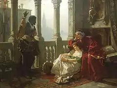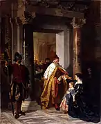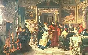 Later in life, he made many visits to Venice to study paintings drawn from life in the 15th and 16th centuries. The chief characteristics of his manner are historical fidelity, skillfulness of technique, and richness of coloring. His works include “Belisarius as a Beggar” (1850), “Jeweler at a Venetian Senator's” (1855), “Visit of Sebastian del Piombo to Titian” (1861), “Doge in Council” (1864), “Charles V and Fugger” (1870), “Dürer in Venice” (1873), “Charles V Visiting Titian” (1873), “In the Picture Gallery” (1874), “Bianca Capello” (1874), “Scene from the Marriage of Figaro” (1874), “Emperor Maximilian Receiving the Venetian Embassy” (1877), and frescos for the Neues Museum in Berlin.