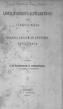 This article incorporates text from a publication now in the public domain: Chisholm, Hugh, ed. (1911). "Zachariae von Lingenthal, Karl Salomo". Encyclopædia Britannica. 28 (11th ed.). Cambridge University Press.