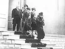 The unveiling of women had a huge symbolic importance to achieve women's participation in society, and the shah introduced the reform gradually so as not to cause unrest.[12] While women teachers where encouraged to unveil in 1933 and schoolgirls and women students in 1935, the official declaration of unveiling were made on 8 January 1936, and the queen and her daughters where given an important role in this event.[12]