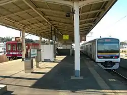 Kashimajingū Station (鹿島神宮駅, Kashima-Jingū-eki) is a junction passenger railway station located in the city of Kashima, Ibaraki Prefecture, Japan, operated by the East Japan Railway Company (JR East) and the by the third sector Kashima Rinkai Railway.