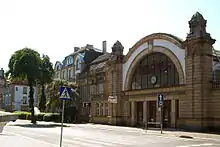 After World War II the train station was judged obsolete, primarily because of the inefficient layout of the train platforms. The construction of the new station began in the 1950s, and the old station was closed in 1972, the year the new station opened.[2] It was classified as a monument in 1975, listed in the National Register of Monuments with the number "A - 1218/75".[5][6] Since then, the old train station has fallen into disrepair.[3] Partially ruined, it has been owned since 2007 by a private developer who plans to renovate the station buildings and develop the complex into a multifunctional center.[7] The reconstruction has been subject to repeated delays, much to the annoyance of the Katowice inhabitants.[8] The ruined state of this historic building is one of the most controversial issues in the modern history of Katowice, leading to repeated news coverage of occasional demonstrations by concerned citizens.[9][10][11][12]