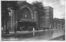 The passenger station, originally one story with two-story avant-corps, was heightened to three stories. Two side terminal buildings were constructed, which received another expansion and reconstruction in the 1920s.[1][2] The main building was used by administration, while the side terminals, incorporating the train platforms, were for passenger use. The terminals were large enough to provide additional services, from hosting commercial shops to sport facilities. By 1912 the station had seven platforms.[2]