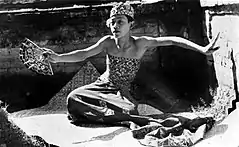 ![]() A kebyar duduk dancer in a seated position | |