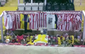 Additionally, the England national team and the England under-21s wore black armbands in their respective matches against Egypt and Greece under-21s on the day of Alexander's death as a tribute.[72][73] Black armbands were worn by clubs up and down the country the following weekend as a mark of respect.[74] Clubs across the country also held either a minute's applause or a minute's silence in respect to Alexander.[75][76]