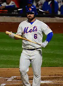 On August 14, 2012, Shoppach was traded from the Red Sox to the New York Mets for a player to be named later,[9] later identified as Pedro Beato.[10] On August 17 he had his first home run as a Met.