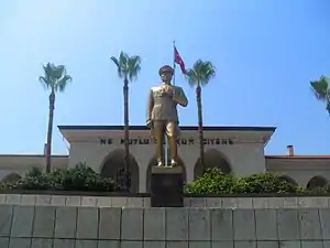 In 1927 he created his first bust, a bust of Atatürk, the founder of Turkish Republic. He continued to create other sculptures of Atatürk. He was specialized in Atatürk sculptures and busts, partially because he was an acquaintance of Atatürk. In many Turkish cities such as Amasya, Tekirdağ, Kırklareli, Çorum, Edirne, Silifke, Elazığ, Isparta, Kastamonu, Mersin, Kayseri and Tarsus the Atatürk monuments in the main meeting squares of the city have been created by Yontunç.[2] One of his most notable busts is Atatürk's mask created just after the death of Atatürk in 1938. This mask became very popular and copies of it were sold nationwide.