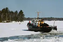 Following the War of 1812 between the United States and Great Britain, the US enjoyed a lengthy period of expansion of international trade, which increased the demand for shipbuilding and stimulated the growth of maritime fleets. Many of those ships were built in Bath. In 1854, at the peak of this boom period, at least nineteen major firms were building ships in Bath.[5] Changes in the industry since the mid-20th century have resulted in the decline in US shipbuilding, as jobs moved offshore. The sole remaining shipyard in Bath is the Bath Iron Works, owned by General Dynamics; this is one of the few yards still building warships for the United States Navy. The USCGC Kennebec was named after this river.