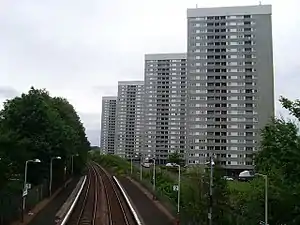 Kennishead railway station is a railway station in Kennishead, a district of Glasgow, Scotland. The station is managed by Abellio ScotRail and is on the Glasgow South Western Line, 4 1⁄4 miles (6.8 km) south of Glasgow Central.