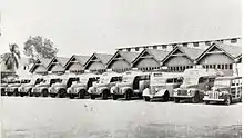 The early buses had 23 leather seats. Entry was through the rear, and the buses had a centre aisle. Ten first-class seats were in the front. Schedules, fares and stops were published, and a parcel service began in which goods could be delivered by designated agents. Conductors wore khaki with a white topi, and inspectors wore khaki. Conductors had machines to issue tickets. Later buses were manufactured by Dodge, Fargo, Bedford, and Chevrolet.[8]
