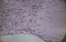 Despite considerable research, the cause of keratoconus remains unclear.[14] Several sources suggest that keratoconus likely arises from a number of different factors: genetic, environmental or cellular, any of which may form the trigger for the onset of the disease.[15][16][17] Once initiated, the disease normally develops by progressive dissolution of Bowman's layer,[10] which lies between the corneal epithelium and stroma. As the two come into contact, cellular and structural changes in the cornea adversely affect its integrity and lead to the bulging and scarring characteristic of the disorder. Within any individual keratoconic cornea, regions of degenerative thinning coexisting with regions undergoing wound healing may be found. Scarring appears to be an aspect of the corneal degradation; however, a recent, large, multicenter study suggests abrasion by contact lenses may increase the likelihood of this finding by a factor over two.[18][19]