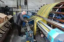 Kerry Woollen Mills are one of the last remaining traditional wool mills still manufacturing in County Kerry. The company was founded over 300 years ago. The mill's machinery was originally driven by the River Gweestin, and its water was also used for washing and dying the wool. The mill was run by the Sealy family for many generations since its inception in 1760, and brought into the capable hands of the Eadie family in 1904, who had gained experience in the wool manufacturing business for many years in Fermanagh and Scotland and are now successfully managing the mill in the fourth generation.[1] Wool is spun, dyed and woven on the premises at the back of a well-stocked showroom, where yarns and the finished products are displayed.[2]