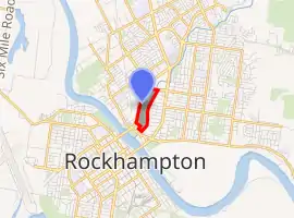 Officially opened in 1988, the parklands are bordered by the Bruce Highway (Moores Creek Road), High Street, Dowling Street and Moores Creek, which flows through the gardens on the eastern boundary, and into the Fitzroy River.[1]