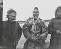 The Ket traditional culture was researched by Matthias Castrén, Vasiliy Ivanovich Anuchin, Kai Donner, Hans Findeisen, and Yevgeniya Alekseyevna Alekseyenko.[10] Shamanism was a living practice into the 1930s, but by the 1960s almost no authentic shamans could be found. Shamanism is not a homogeneous phenomenon, nor is shamanism in Siberia. As for shamanism among Kets, it shared characteristics with those of Turkic and Mongolic peoples.[11] Additionally, there were several types of Ket shamans,[12][13] differing in function (sacral rites, curing), power, and associated animals (deer, bear).[13] Also, among Kets (as with several other Siberian peoples such as the Karagas[14][15][16]) there are examples of the use of skeleton symbolics.[11] Hoppál interprets this as a symbol of shamanic rebirth,[17] although it may symbolize also the bones of the loon (the helper animal of the shaman, joining the air and underwater worlds, just like the story of the shaman who travelled both to the sky and the underworld).[18] The skeleton-like overlay represented shamanic rebirth among some other Siberian cultures as well.[19]