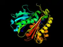 - Khandekar, SS; Gentry, DR; Van Aller, GS; Warren, P; Xiang, H; Silverman, C; Doyle, ML; Chambers, PA; Konstantinidis, AK; Brandt, M; Daines, RA; Lonsdale, JT (10 August 2001). "Identification, substrate specificity, and inhibition of the Streptococcus pneumoniae beta-ketoacyl-acyl carrier protein synthase III (FabH)". The Journal of Biological Chemistry. 276 (32): 30024–30. doi:10.1074/jbc.M101769200. PMID 11375394.