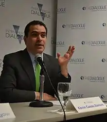 Kevin Casas-Zamora (born August 4, 1968) is a Costa Rican politician, lawyer and political scientist. Casas-Zamora is Managing Partner at Analitica Consulting Group, professor of political science and history at LEAD University, in Costa Rica, member of the Presidential Commission for State Reform in Costa Rica, and Senior Fellow and former Director of the Peter D. Bell Rule of Law Program at the Inter-American Dialogue, a policy research center based in Washington D.C. Prior to that he was Secretary for Political Affairs at the Organization of American States [1] and Senior Fellow at the Brookings Institution.[2] He also served as Minister of National Planning and Economic Policy as well as second Vice President of Costa Rica under Oscar Arias from May 8, 2006[3] until September 22, 2007.[4] He earned his JD from the University of Costa Rica, his MA from the University of Essex, and his DPhil from the University of Oxford. His doctoral thesis, titled “Paying for Democracy in Latin America: Political Finance and State Funding for Parties in Costa Rica and Uruguay,” won the 2004 Jean Blondel PhD Prize from the European Consortium for Political Research for best thesis in politics in Europe and was later developed into a book, under the title "Paying for Democracy."[5] In 2007 Casas-Zamora was selected as Young Global Leader by the World Economic Forum.[6] Since 2013, he is a member of the Bretton Woods Committee.