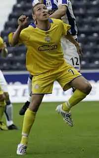 He was released by Morton at the end of the 2009–10 season,[2] and subsequently signed for Clyde.[3] He made 35 appearances in all competitions for the Bully Wee, before leaving the club in May 2011, after turning down a new contract.