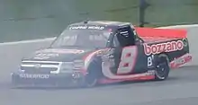 The No. 8 truck originally ran as a third truck in 2009 for four races as the No. 2. In 2009, Ryan Newman and Harvick finished with four top fives in the four starts, with Harvick winning in Martinsville. Kevin Harvick, Inc. signed Nelson Piquet Jr. to drive this truck Full Time in 2011.[4] Nelson will be running NASCAR Rookie of the Year. This is one of the first times the 8 truck has run since 1997 when Joe Nemechek's brother John Nemechek was killed. In 2011, Piquet ran full-time with sponsors Qualcomm, Autotrac, Bozzano, Jontex and others. Piquet would finish 10th in his inaugural NASCAR season, but came runner up to Joey Coulter for rookie of the year honors. This truck was bought out by Eddie Sharp Racing for 2012.