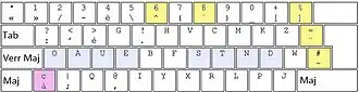 The AZERTY layout is used in France, Belgium, and some African countries. It differs from the QWERTY layout thus:
