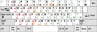 Mixed hardware-to-software keyboard extensions exist to overcome above discrepancies between functional and visual layouts. A keyboard overlay[9] is a plastic or paper masks that can be placed over the empty space between the keys, providing the user with the functional use of various keys. Alternatively, a user applies keyboard stickers with an extra imprinted language alphabet and adds another keyboard layout via language support options in the operating system.[10] The visual layout of any keyboard can also be changed by simply replacing its keys or attaching labels to them, such as to change an English-language keyboard from the common QWERTY to the Dvorak layout, although for touch typists, the placement of the tactile bumps on the home keys is of more practical importance than that of the visual markings.