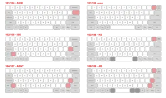 - the presence and placement of one or two Alt keys, an AltGr key or Option key, a backspace or delete key, a control key or command key, a compose key, an esc key, and OS-specific keys like the Windows key.