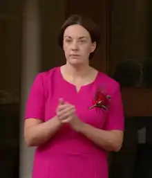In a 2016 interview with Mary Riddell for the Fabian Review, Dugdale said she was in a relationship with a woman but was disinclined to provide details of her private life.[42][43] She first appeared in public with her partner Louise Riddell when they voted together in Edinburgh in the 2016 Scottish Parliament election.[44][45][46] In February 2017, Dugdale revealed the couple had separated shortly after the New Year and following nine years together.[47] In July 2017, it was reported Dugdale was in a relationship with Mid Fife and Glenrothes MSP Jenny Gilruth, a member of the SNP, and the two had started dating around four months earlier.[48] In September 2017, she was named Politician of the Year at the Icon Awards, an awards ceremony celebrating Scotland's LGBT community.[49]
