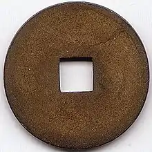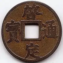 The inscription "Khải Định Thông Bảo" was also used for non-cash coins produced under the reign of Emperor Khải Định for tiền (錢) and lạng (兩) coins made from silver and gold, respectively.[8] Although more commonly the inscription Khải Định Niên Tạo (啓定年造) was used for silver ingots (sycees).[9]