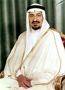 Khalid bin Abdulaziz Al Saud (Arabic: خالد بن عبد العزيز آل سعود Khālid ibn ‘Abd al ‘Azīz Āl Su‘ūd; 13 February 1913 – 13 June 1982) was the fourth King of Saudi Arabia from 25 March 1975 to his death.[1] He was one of the sons of Ibn Saud, the founder of modern Saudi Arabia. King Khalid's reign saw both huge developments in the country due to increase in oil revenues and significant events in the Middle East.