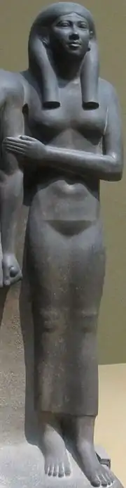 Khamerernebty II was an ancient Egyptian queen of the 4th Dynasty. She was a daughter of Pharaoh Khafre and Queen Khamerernebty I. She married her brother Menkaure and she was the mother of Prince Khuenre.