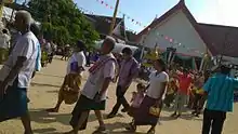 Around April to May people annually participate in "wan wang" which means "free day". Usually held for three days, over this period people cease all kind of activities. This traditional ceremony is very similar to Songkran (Thai New Year). In this ceremony, however, not only laypersons can participate, but monks are also allowed to join. People will gently pour and sprinkle water on statues of Buddha first, then on monks and elders. Nobody is allowed to play before the ablution. Every evening of each day there is local folk storytelling, dancing, and games.