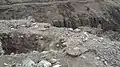 The monastery with its five churches was intact when photographed by the Armenian archaeologist Ashkharbek Kalantar in August 1920, just before Turkey captured the region from Armenia.[2] In 1959 the French art historian Jean-Michel Thierry visited the site and found that four of the five churches had been destroyed, with only the Church of Saint Sargis surviving.[3] According to local people, the churches were blown up by the Turkish army using high explosives, which was reaffirmed by citizens of Digor in 2002.[4] Their information is confirmed by the physical evidence on the site. The dome of the surviving church is intact but the side walls have been blown outwards; the destroyed churches have been entirely leveled with their masonry blasted into the gorge below. This is damage that cannot have occurred as a result of an earthquake, William Dalrymple remarked.[5]