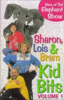 The Kid Bits collection is a composed of three mini-album/compilation cassettes released by Sharon, Lois & Bram in 1995 under the American Drive Entertainment Inc. label. They are available only on cassette and are some of the harder-to-find 'Sharon, Lois & Bram' cassettes. Each cassette features between thirteen and fourteen Sharon, Lois & Bram songs that were previously released on some of the trio's past albums.