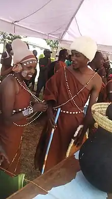 Further, time was recorded through the initiation by circumcision. Each initiation group was given a special name.[24] According to Professor Godfrey Mũriũki, the individual initiation sets are then grouped into a regiment every nine calendar years. Before a regiment or army was set, there was a period in which no initiation of boys took place. This period lasted a total of four and a half calendar years (nine seasons in Gĩkũyũ land, each season referred to as imera) and is referred to as mũhingo,[24] with initiation taking place at the start of the fifth year and going on annually for the next nine calendar years. This was the system adopted in Metumi Murang'a. The regiment or army sets also get special names, some of which seem to have ended up as popular male names. In Gaki Nyeri the system was inversed with initiation taking place annually for four calendar years, which would be followed by a period of nine calendar years in which no initiation of boys took place (mũhingo).[24] Girls, on the other hand, were initiated every year. Several regiments then make up a ruling generation. It was estimated that ruling generations lasted an average of 35 years. The names of the initiation and regiment sets vary within Gĩkũyũ land. The ruling generations are however uniform and provide very important chronological data. On top of that, the initiation sets were a way of documenting events within the Gĩkũyũ nation, so, for example, were the occurrence of smallpox and syphilis recorded.[24] Girls’ initiation sets were also accorded special names, although there has been little research in this area. Mũriũki only unearths three sets, whose names are, Rũharo [1894], Kibiri/Ndũrĩrĩ [1895], Kagica [1896], Ndutu/Nuthi [1897].[24] All these names are taken from Metumi (Mũrang’a) and Kabete Kĩambu.