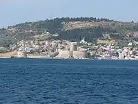 Kilitbahir Castle (Turkish: Kilitbahir Kalesi) is a fortress on the west side of the Dardanelles, opposite the city of Çanakkale, where there is a corresponding fortress (Kale-i Sultaniye), from which Çanakkale takes its name. The two castles were constructed by Fatih Sultan Mehmet in 1463 to control the straits at their narrowest point. Kilitbahir's name, meaning "lock of the sea", reflects this defensive purpose.[1]