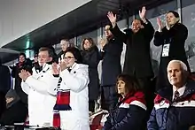 On 9 February 2018, Yo-jong attended the 2018 Winter Olympics opening ceremony in Pyeongchang, South Korea. This was the first time that a member of the ruling Kim dynasty had visited South Korea since the Korean War.[29] She met with South Korean President Moon Jae-in on 10 February and revealed she was dispatched as a special envoy of Kim Jong-un and delivered a personally written letter from Kim to Moon.[30] Kim was later part of her brother's team during the 2018 North Korea–United States Singapore Summit[31] and the 2019 North Korea–United States Hanoi Summit. Her involvement in diplomatic affairs continued as she issued an official statement in March 2020 from her capacity as first deputy department director of the party.[32]