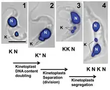 - Gluenz E, et al. (March 2011). "The kinetoplast replication cycle in Trypanosoma brucei is orchestrated by cytoskeleton-mediated cell morphogenesis". Molecular Cell Biology. 31 (5): 1012–1021. doi:10.1128/MCB.01176-10. PMC 3067821. PMID 21173163.