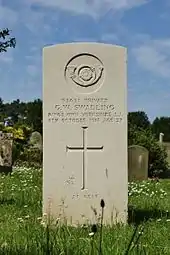 The 1/4th and 1/5th Battalions landed at Boulogne-sur-Mer as part of the 3rd West Riding Brigade in the West Riding Division in April 1915 for service on the Western Front.[12] The 2/4th and 2/5th Battalions landed at Le Havre as part of the 187th Brigade in the 62nd (2nd West Riding) Division in January 1917 also for service on the Western Front.[12] Lt-Col Oliver Watson commanding 5th KOYLI was awarded the Victoria Cross (VC) posthumously for his actions at Rossignol Wood on 27 March 1918,[14] and Sergeant Laurence Calvert of the same battalion was awarded the VC for actions at the Battle of Havrincourt (2 September 1918).[15] Corporal Ernest Hayes, who was awarded three Military Medals in 1918 for acts of bravery on the Western Front, served with the 2/4th Battalion.[16]