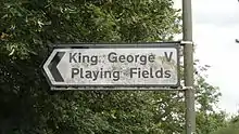 Following the death of King George V in 1936 the King George's Fields Foundation was established to give grants for the establishment of playing fields, the work of the foundation is now undertaken by charity Fields in Trust. The Totteridge fields were originally the third largest of all King George's Fields at 93 acres, and the Foundation gave a grant of £3,000 towards the total capital cost of £62,335.[1] The rules of the Foundation required permanent preservation of the area as a King George's Field as a memorial to the king,[2] but less than a fifth of the original size remains.